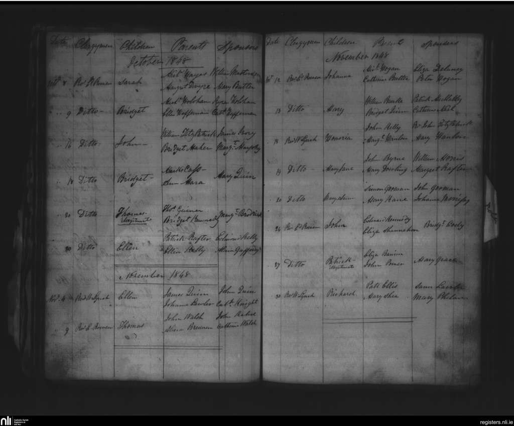 St. Mary's, Kilkenny city; County of Kilkenny; Diocese of Ossory. Baptisms, Oct. 1848 to Nov. 1848