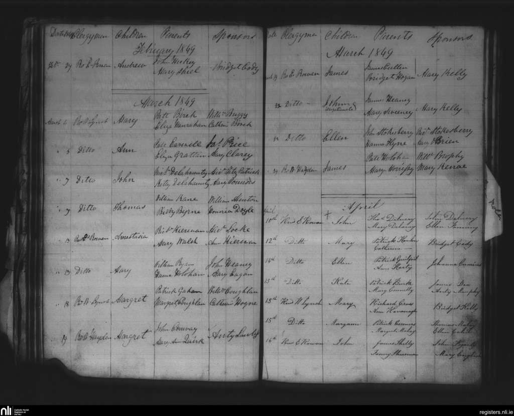 St. Mary's, Kilkenny city; County of Kilkenny; Diocese of Ossory. Baptisms, Feb. 1849 to Apr. 1849