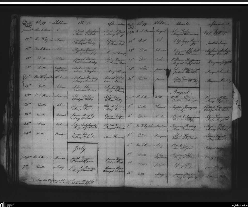 St. Mary's, Kilkenny city; County of Kilkenny; Diocese of Ossory. Baptisms, June 1849 to Aug. 1849