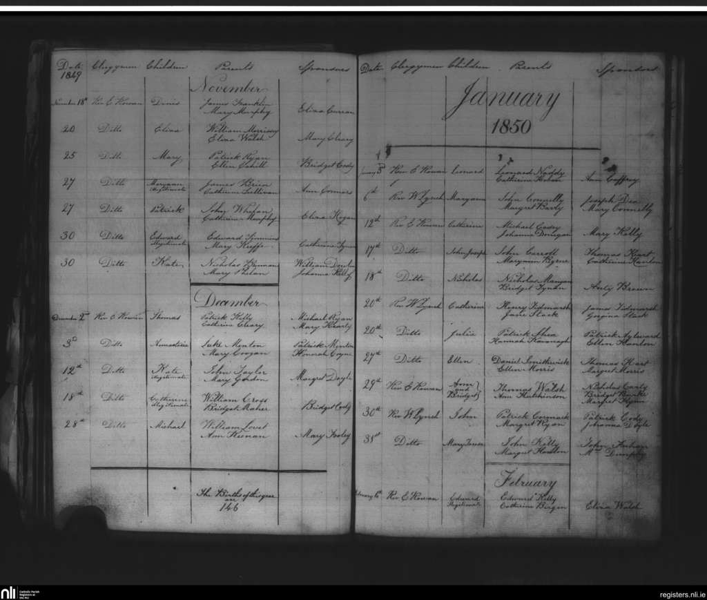 St. Mary's, Kilkenny city; County of Kilkenny; Diocese of Ossory. Baptisms, Nov. 1849 to Feb. 1850