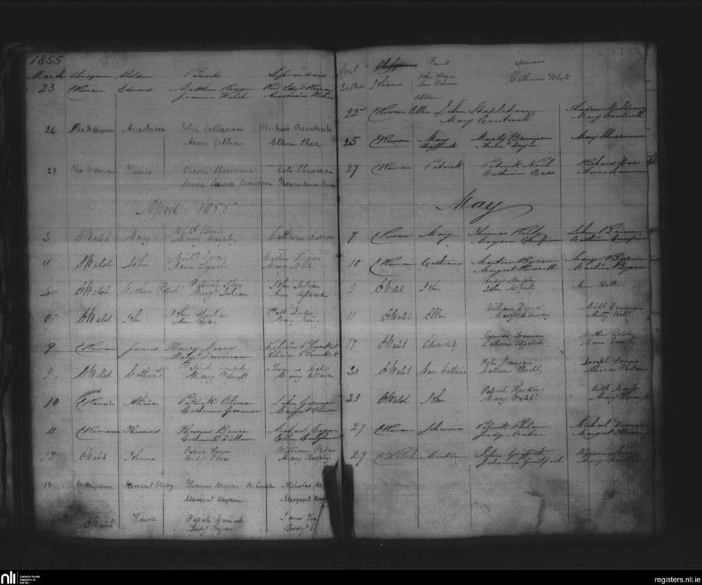 St. Mary's, Kilkenny city; County of Kilkenny; Diocese of Ossory. Baptisms, Mar. 1855 to May 1855