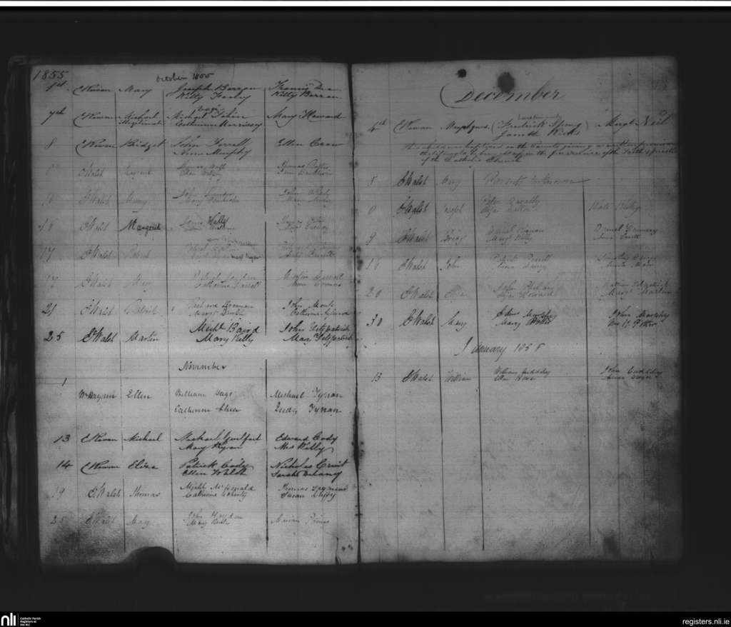 St. Mary's, Kilkenny city; County of Kilkenny; Diocese of Ossory. Baptisms, Oct. 1855 to Jan. 1856