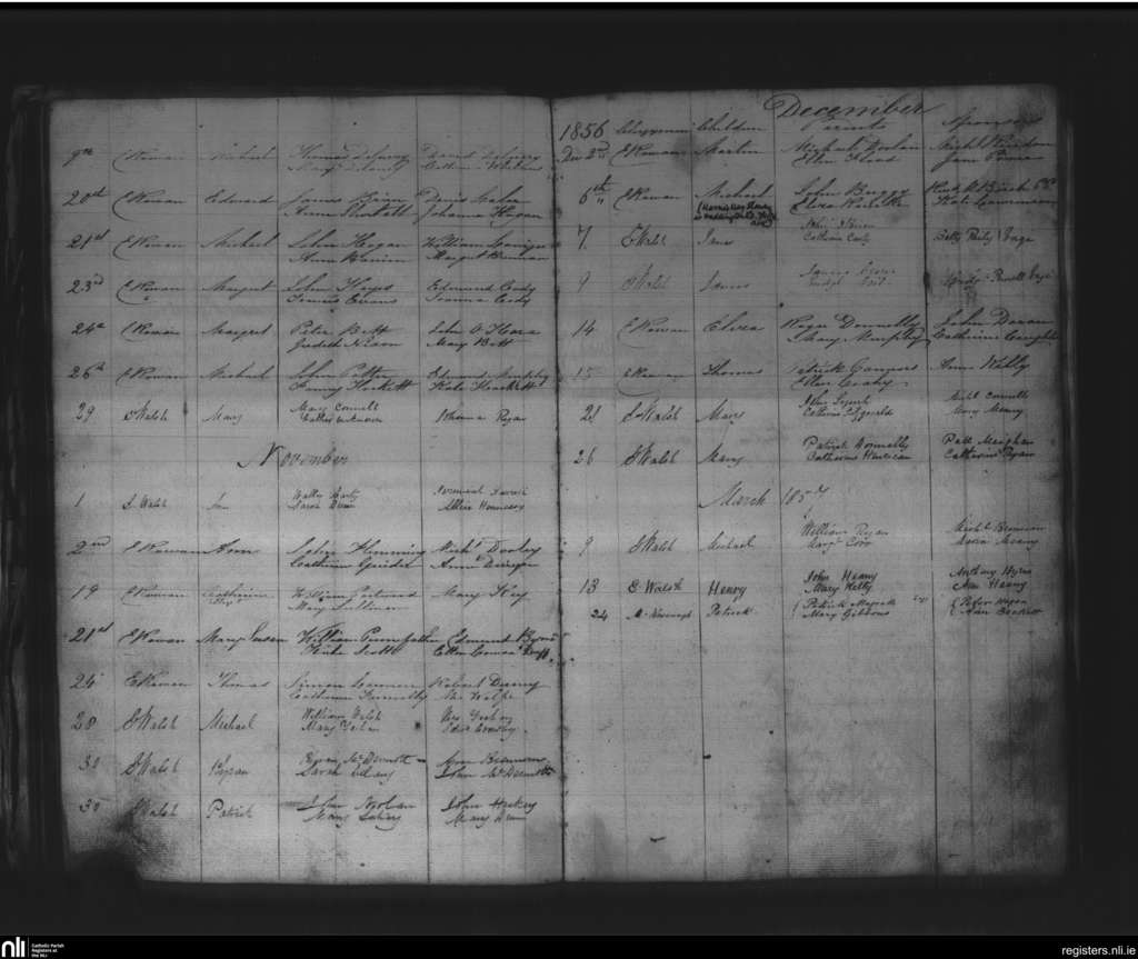 St. Mary's, Kilkenny city; County of Kilkenny; Diocese of Ossory. Baptisms, Oct. 1856 to Mar. 1857