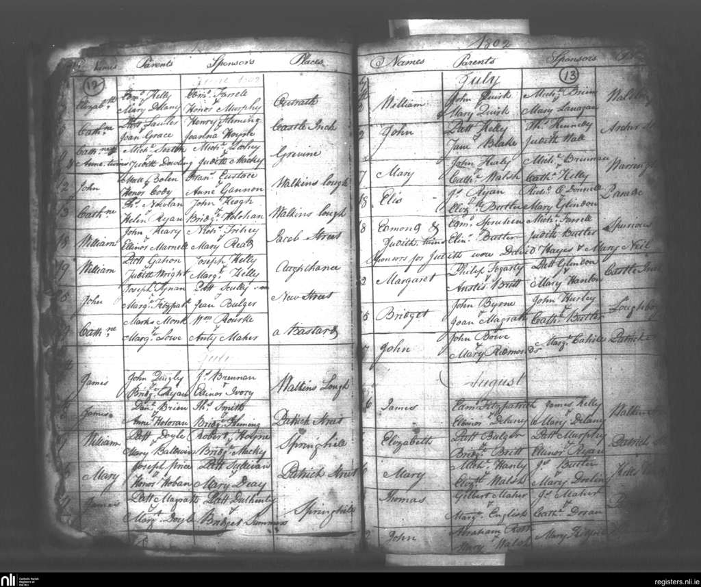 St. Patrick's, Kilkenny city; County of Kilkenny; Diocese of Ossory. Baptisms, June 1802 to Aug. 1802