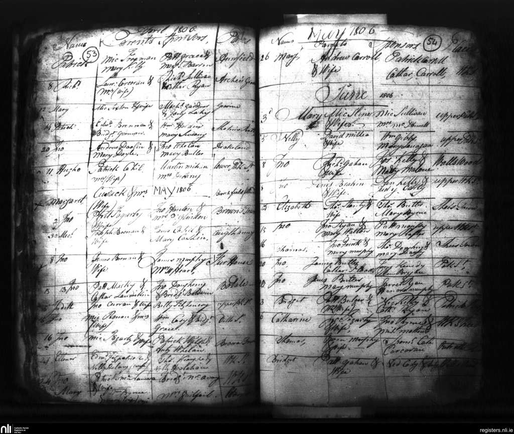 St. Patrick's, Kilkenny city; County of Kilkenny; Diocese of Ossory. Baptisms, Apr. 1806 to June 1806
