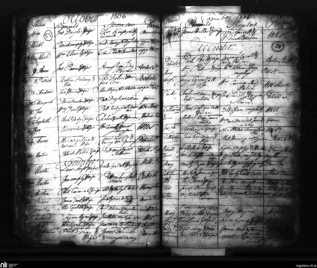St. Patrick's, Kilkenny city; County of Kilkenny; Diocese of Ossory. Baptisms, Oct. 1806 to Jan. 1807