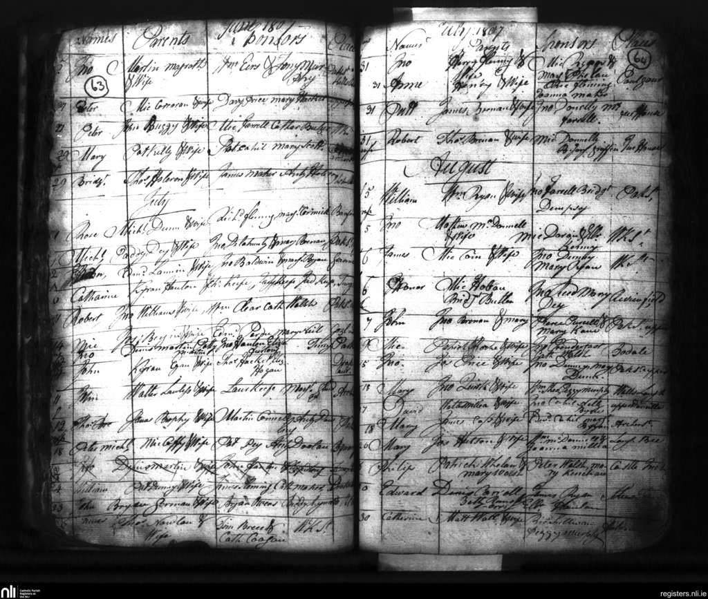 St. Patrick's, Kilkenny city; County of Kilkenny; Diocese of Ossory. Baptisms, June 1807 to Aug. 1807