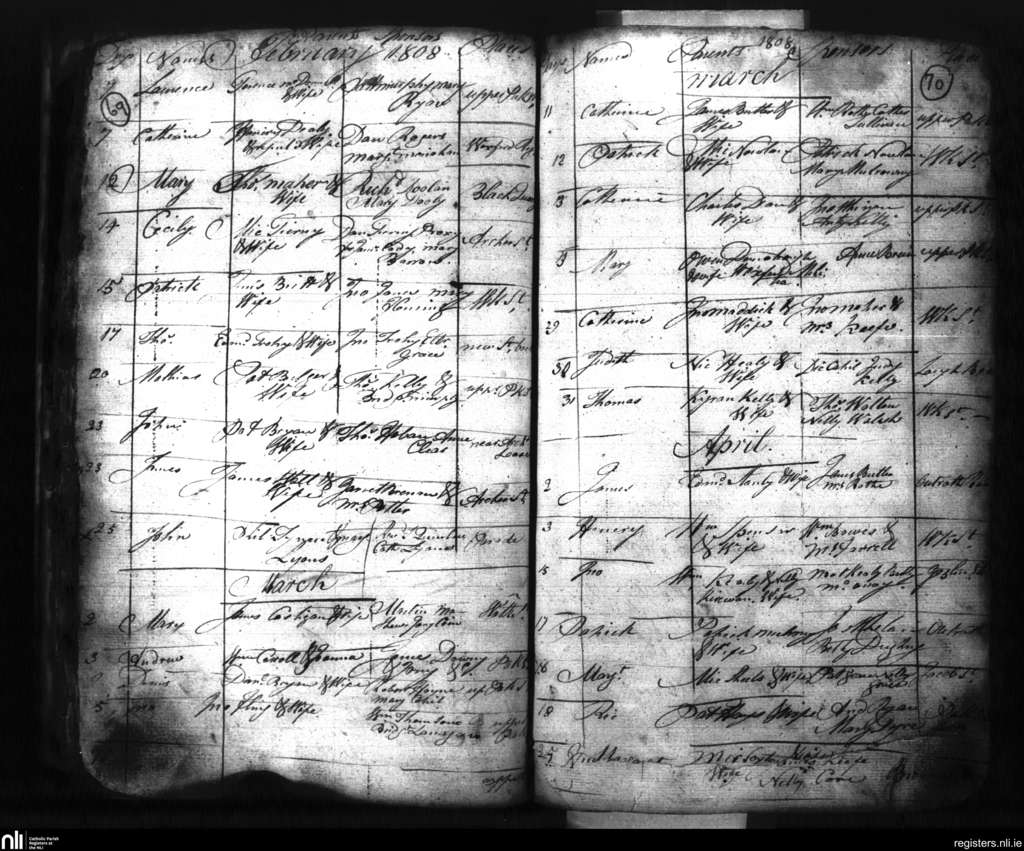 St. Patrick's, Kilkenny city; County of Kilkenny; Diocese of Ossory. Baptisms, Feb. 1808 to Apr. 1808