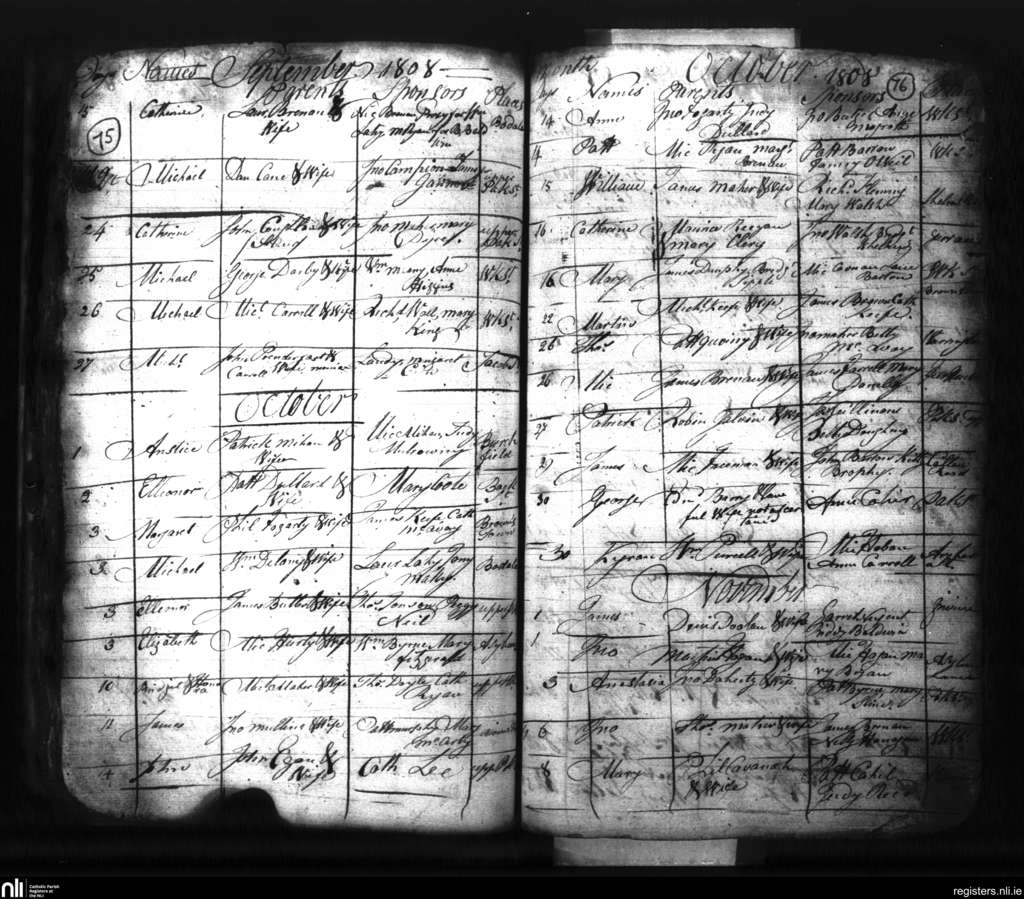 St. Patrick's, Kilkenny city; County of Kilkenny; Diocese of Ossory. Baptisms, Sep. 1808 to Nov. 1808