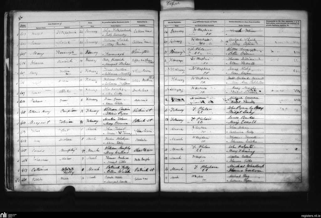 St. Patrick's, Kilkenny city; County of Kilkenny; Diocese of Ossory. Baptisms, Jan. 1871 to Mar. 1871