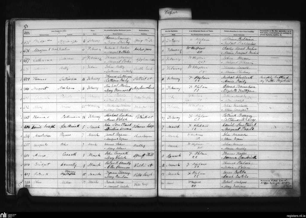 St. Patrick's, Kilkenny city; County of Kilkenny; Diocese of Ossory. Baptisms, Feb. 1872 to Mar. 1872