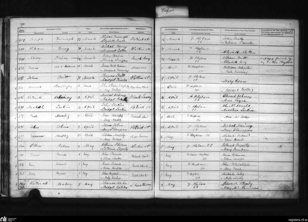 St. Patrick's, Kilkenny city; County of Kilkenny; Diocese of Ossory. Baptisms, Mar. 1872 to May 1872
