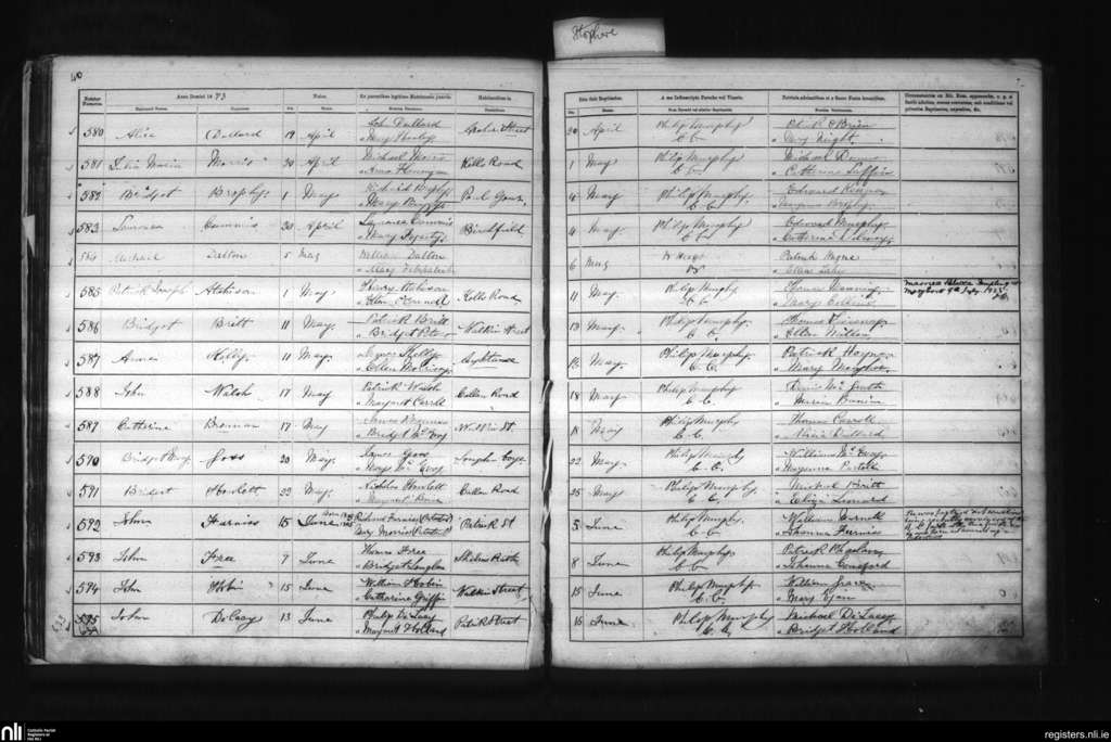 St. Patrick's, Kilkenny city; County of Kilkenny; Diocese of Ossory. Baptisms, Apr. 1873 to June 1873