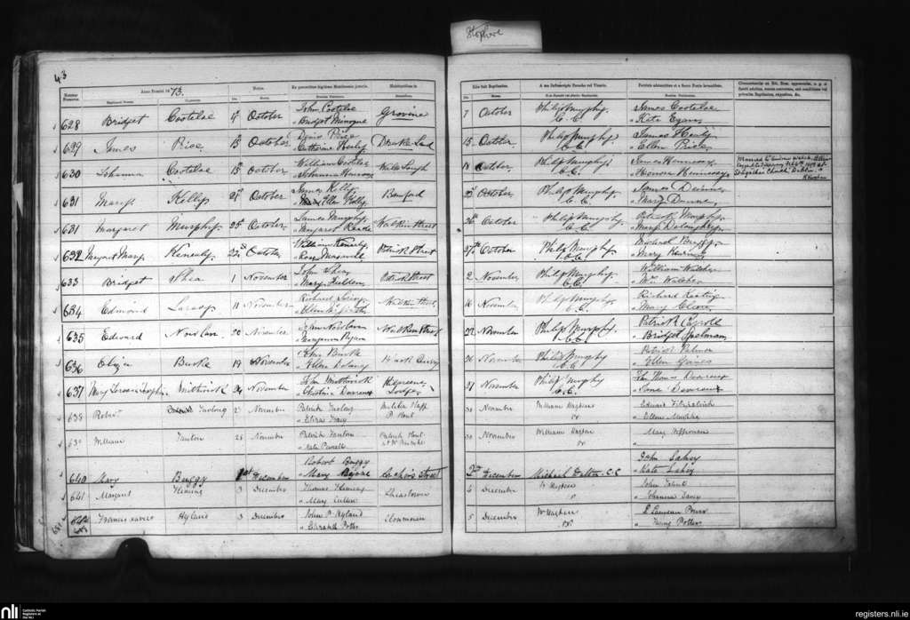 St. Patrick's, Kilkenny city; County of Kilkenny; Diocese of Ossory. Baptisms, Oct. 1873 to Dec. 1873