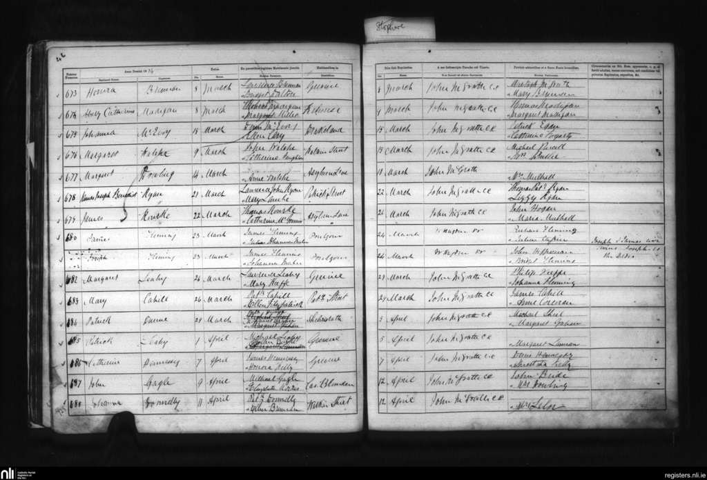 St. Patrick's, Kilkenny city; County of Kilkenny; Diocese of Ossory. Baptisms, Mar. 1874 to Apr. 1874