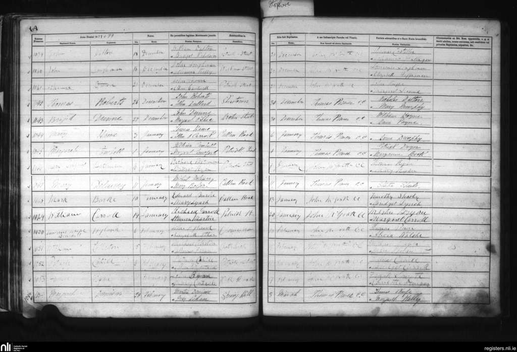 St. Patrick's, Kilkenny city; County of Kilkenny; Diocese of Ossory. Baptisms, Dec. 1877 to Mar. 1878