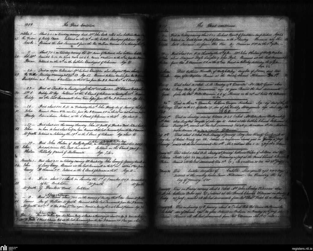 Kilmacow; County of Kilkenny; Diocese of Ossory. Deaths, Oct. 1859 to Jan. 1860