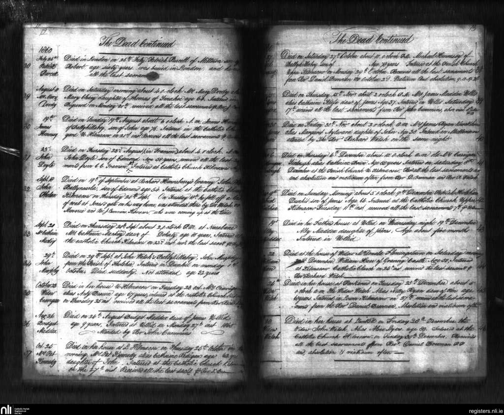 Kilmacow; County of Kilkenny; Diocese of Ossory. Deaths, July 1860 to Dec. 1860