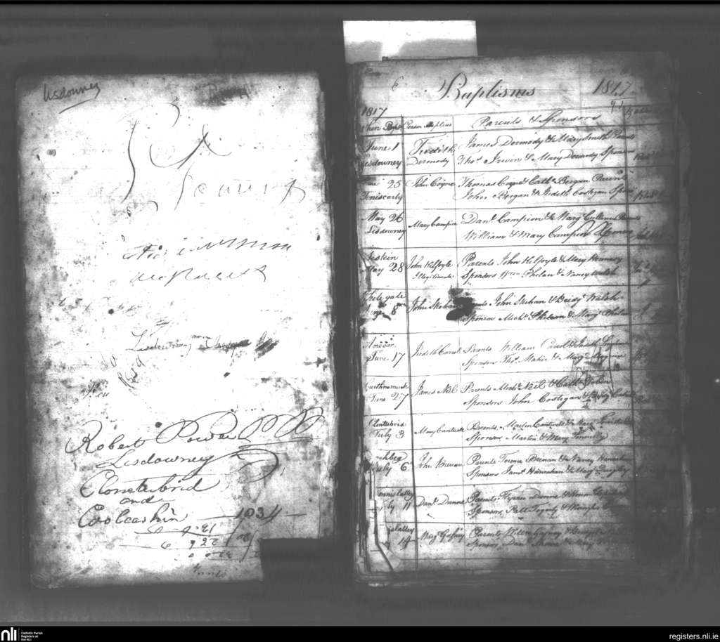 Lisdowney; County of Kilkenny, Laois; Diocese of Ossory. Baptisms, Marriages, June 1817 to July 1817