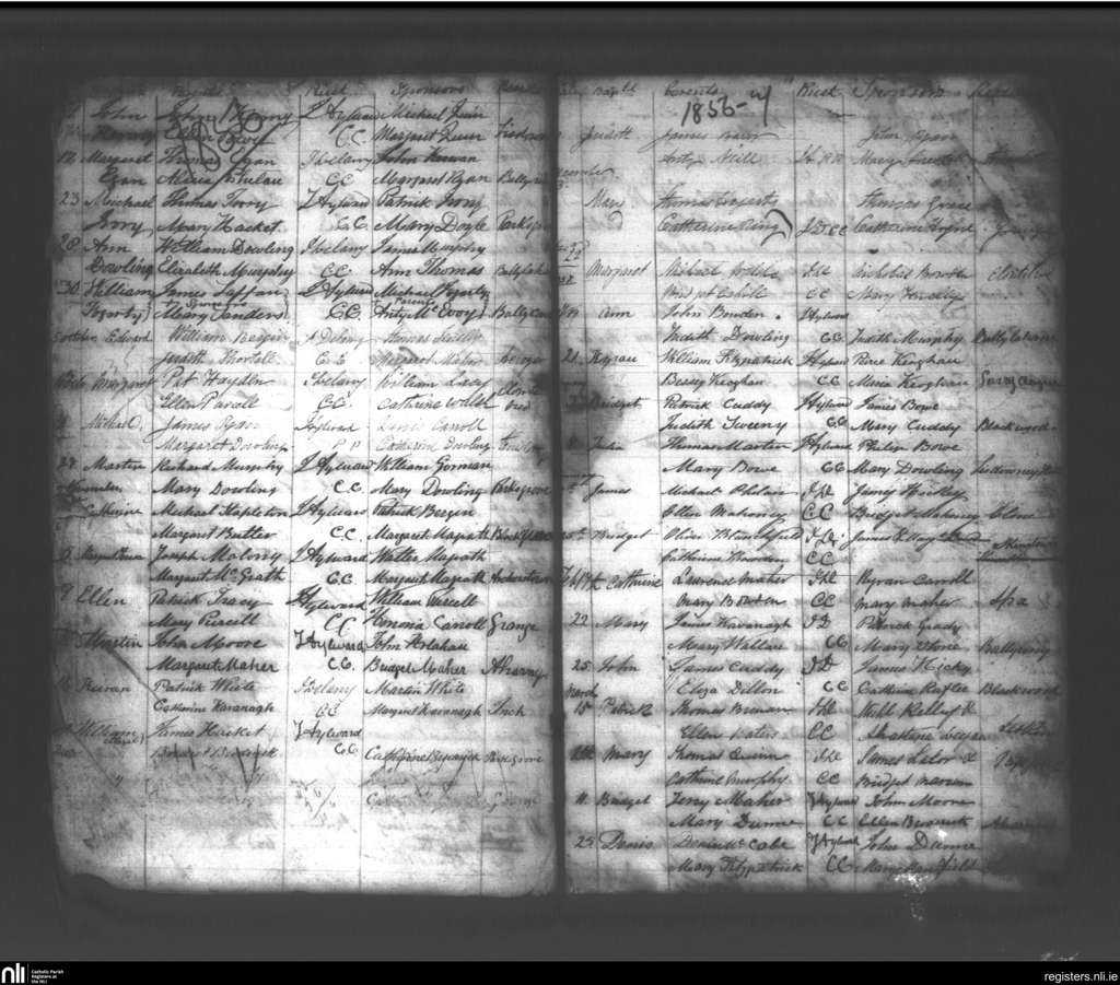 Lisdowney; County of Kilkenny, Laois; Diocese of Ossory. Baptisms, Sep. 1856 to Mar. 1857