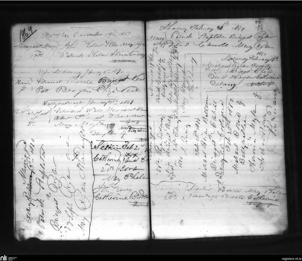 Lisdowney; County of Kilkenny, Laois; Diocese of Ossory. Baptisms, Dec. 1869 to Feb. 1870