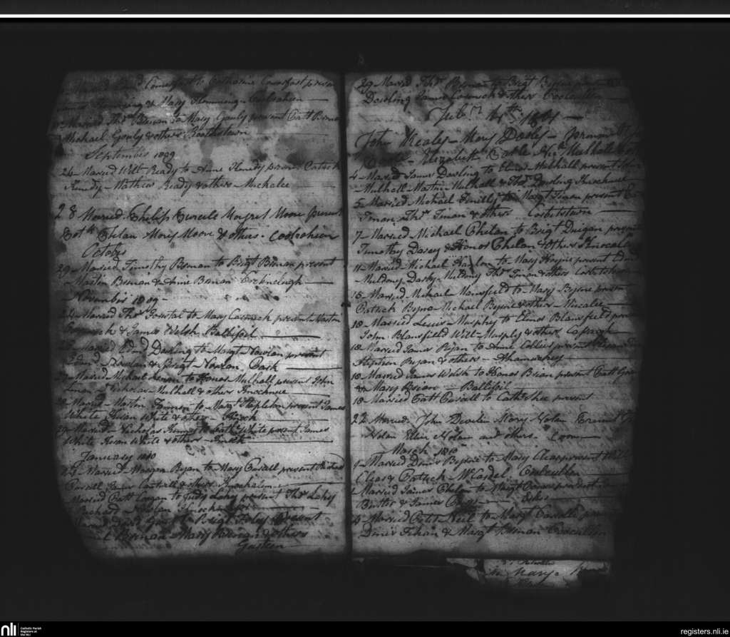 Muckalee; County of Kilkenny; Diocese of Ossory. Marriages, Sep. 1809 to Mar. 1810