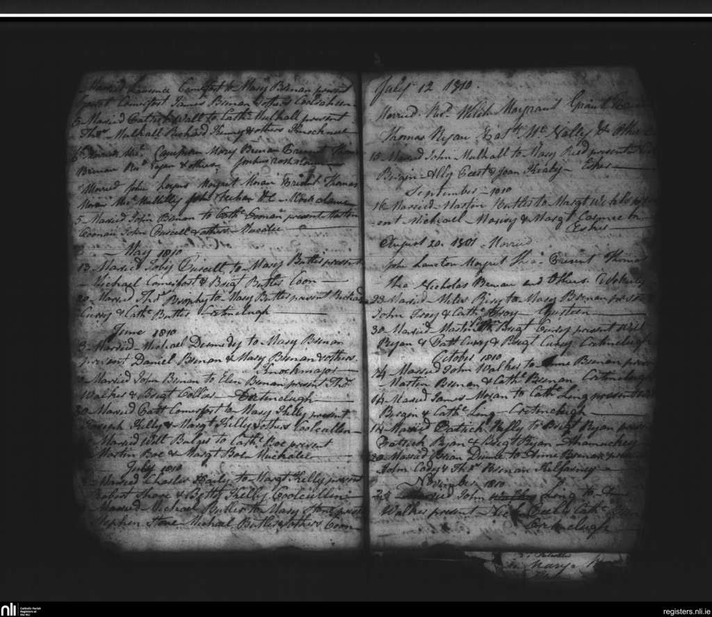Muckalee; County of Kilkenny; Diocese of Ossory. Marriages, Mar. 1810 to Nov. 1810