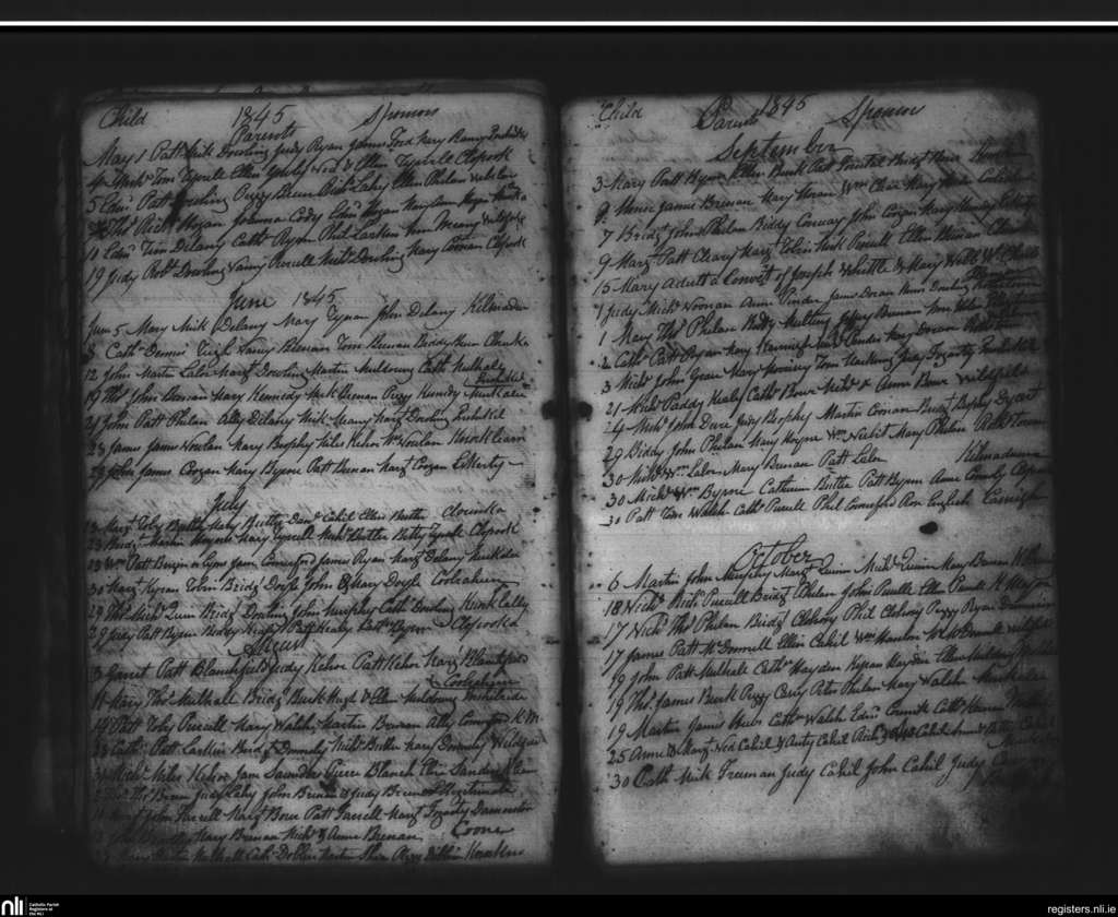 Muckalee; County of Kilkenny; Diocese of Ossory. Baptisms, May 1845 to Oct. 1845
