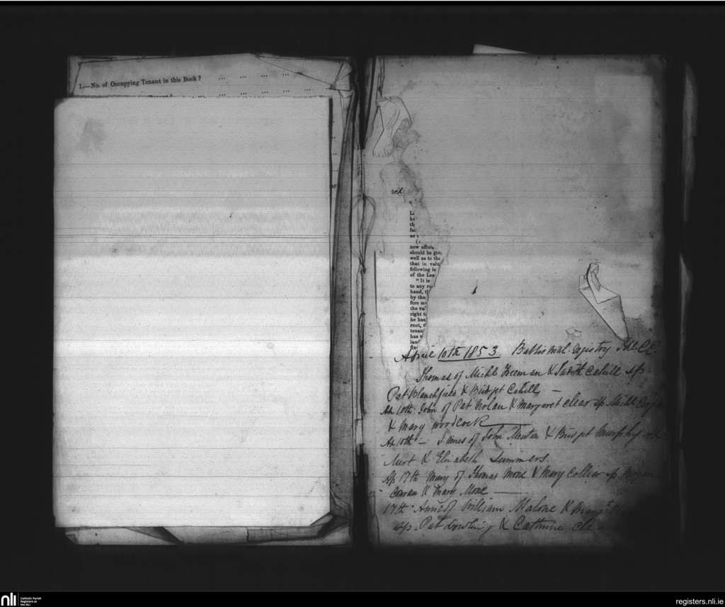 Muckalee; County of Kilkenny; Diocese of Ossory. Baptisms, Apr. 1853