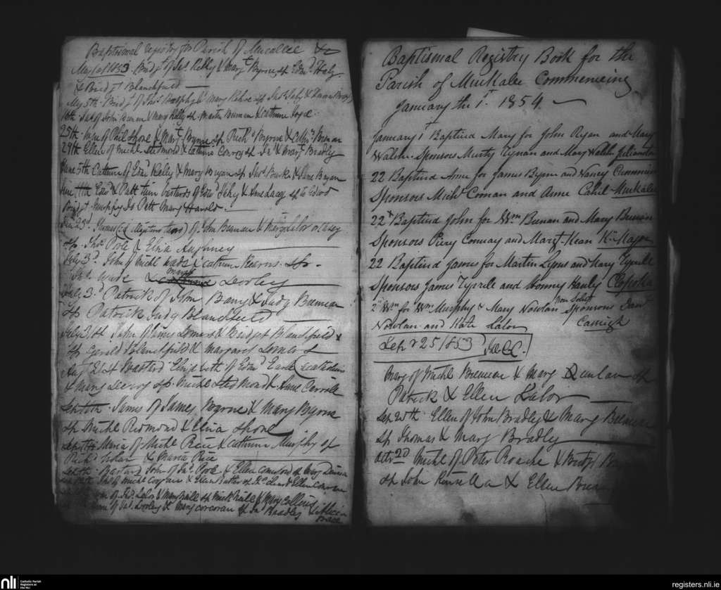 Muckalee; County of Kilkenny; Diocese of Ossory. Baptisms, May 1853 to Jan. 1854