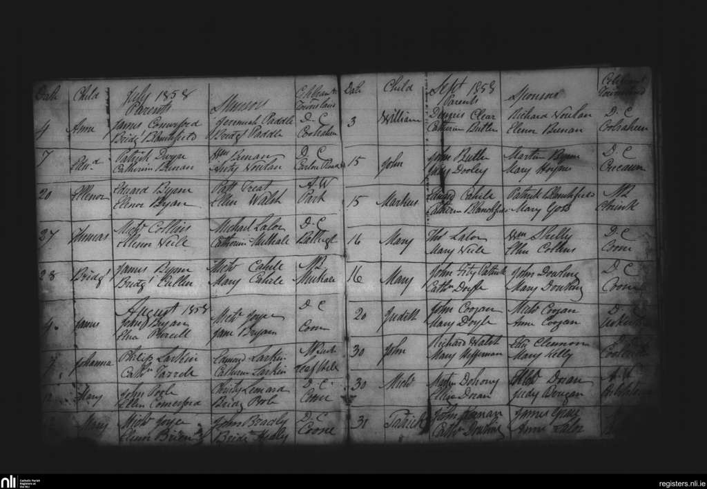 Muckalee; County of Kilkenny; Diocese of Ossory. Baptisms, July 1858 to Sep. 1858