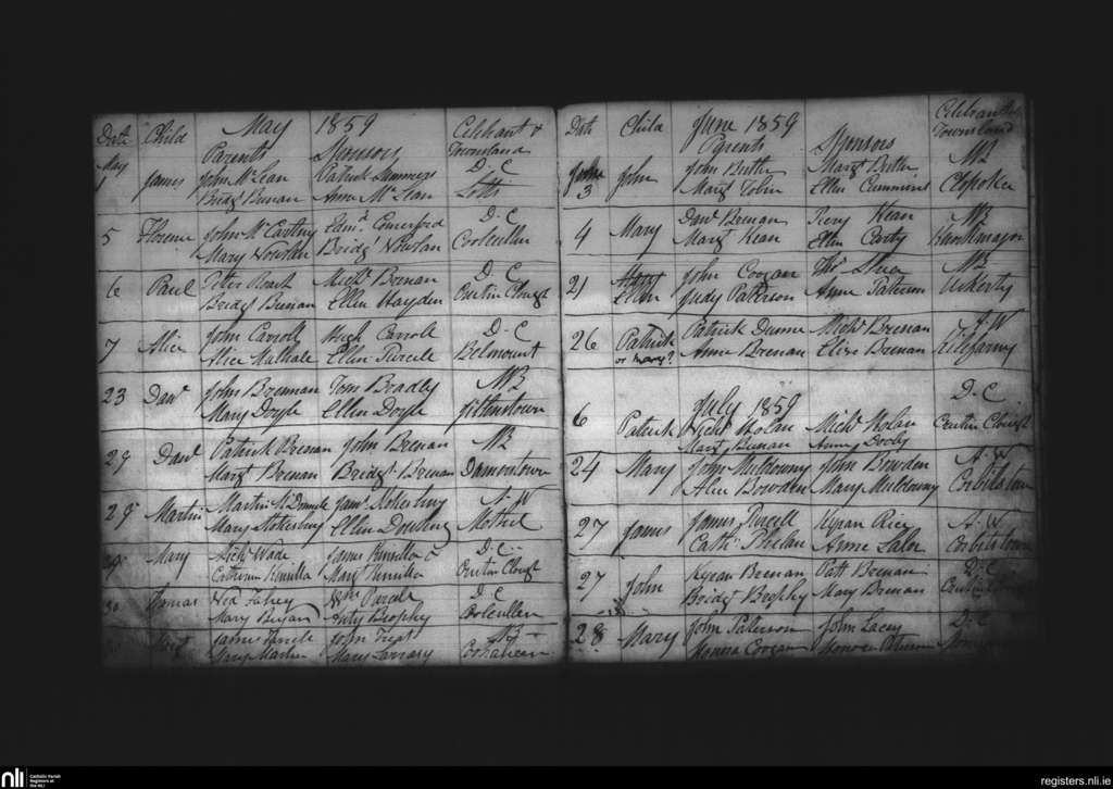 Muckalee; County of Kilkenny; Diocese of Ossory. Baptisms, May 1859 to July 1859