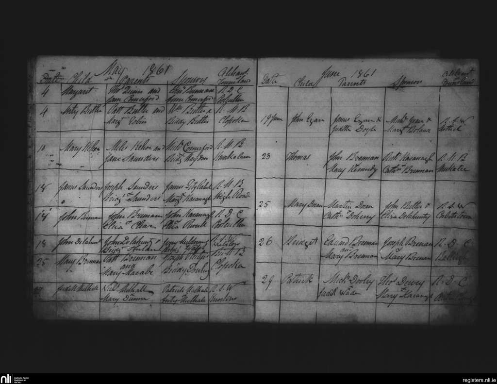 Muckalee; County of Kilkenny; Diocese of Ossory. Baptisms, May 1861 to June 1861