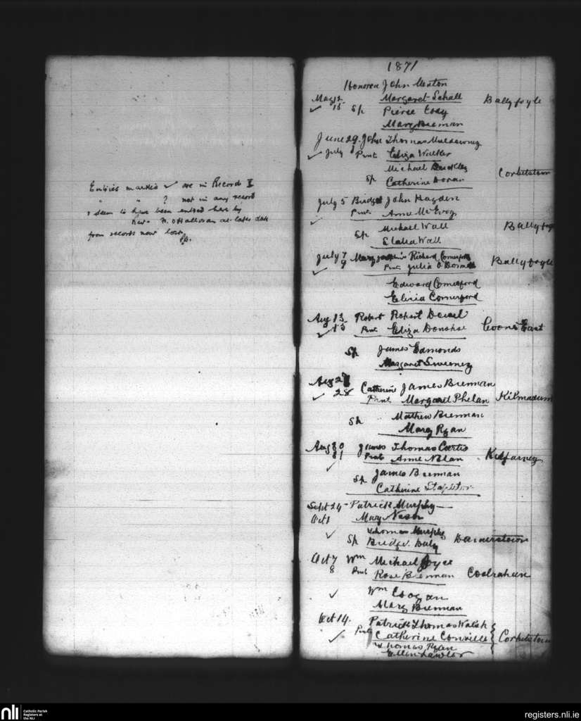 Muckalee; County of Kilkenny; Diocese of Ossory. Baptisms, May 1871 to Oct. 1871