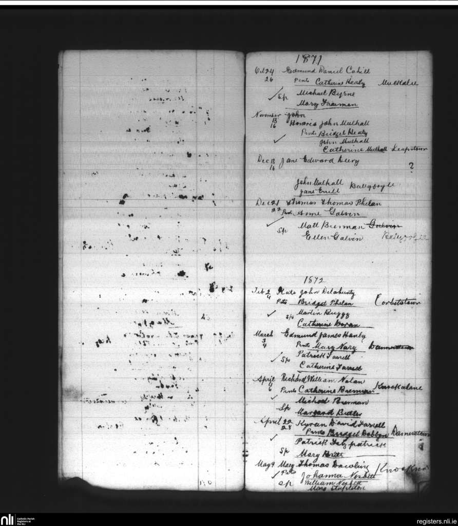 Muckalee; County of Kilkenny; Diocese of Ossory. Baptisms, Oct. 1871 to May 1872