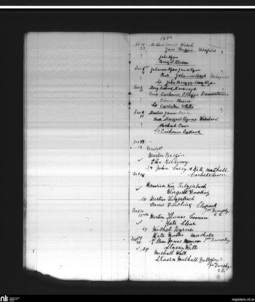 Muckalee; County of Kilkenny; Diocese of Ossory. Baptisms, Nov. 1872 to Dec. 1872