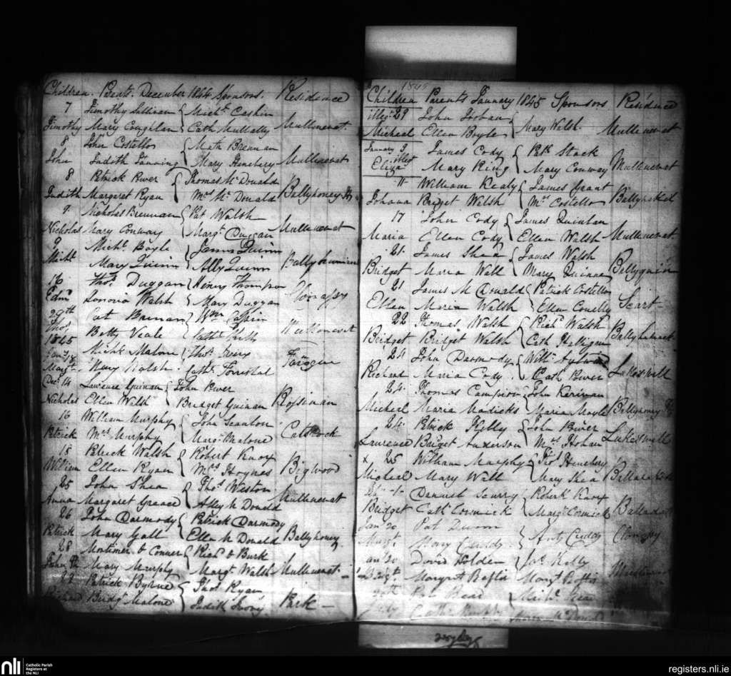 Mullinavat; County of Kilkenny; Diocese of Ossory. Baptisms, Dec. 1844 to Jan. 1845