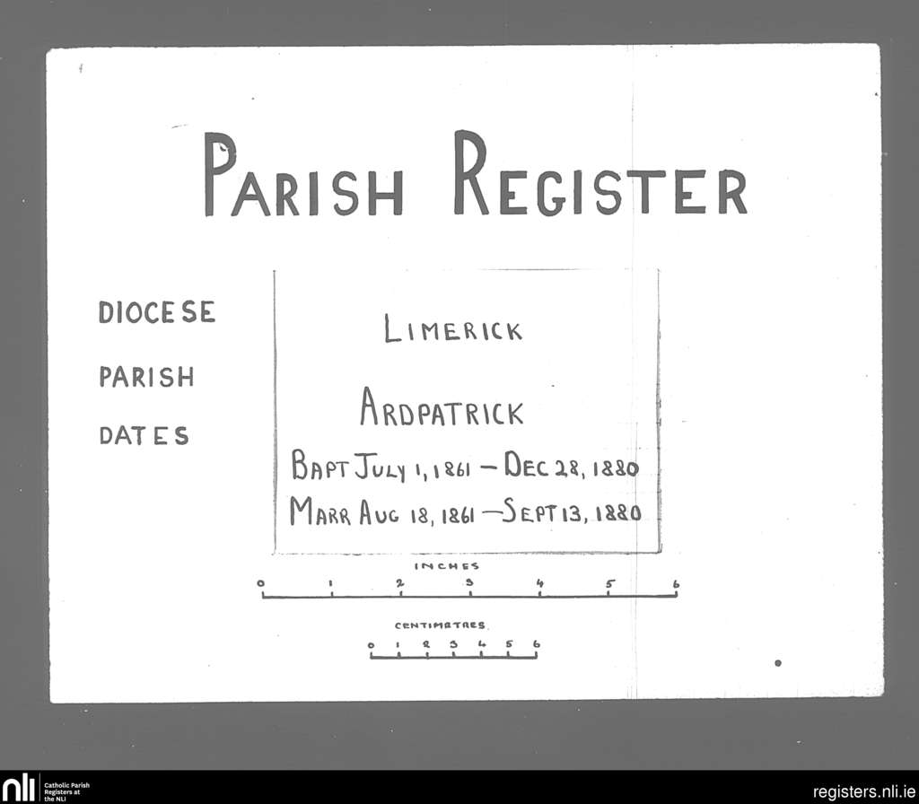 Ardpatrick; County of Limerick; Diocese of Limerick. Baptisms, Marriages