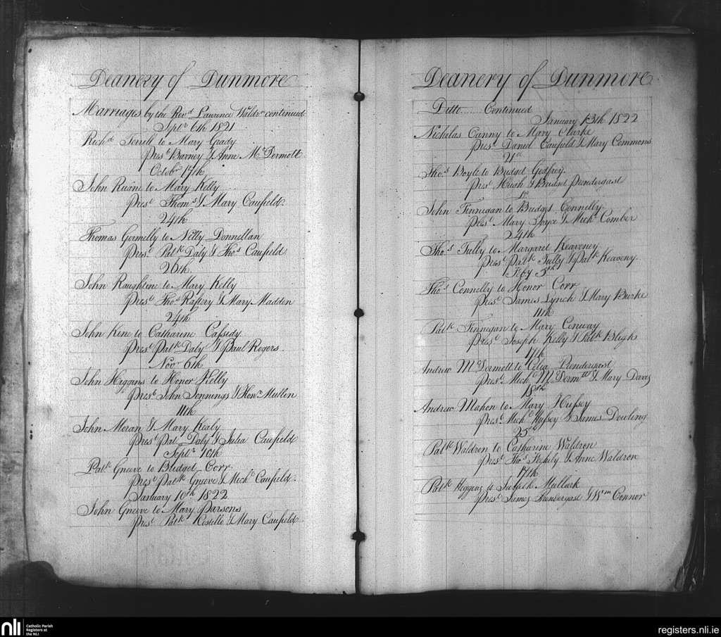 Multiple Parishes; Multiple Counties; Archdiocese of Tuam. Marriages, Sep. 1821 to Feb. 1822