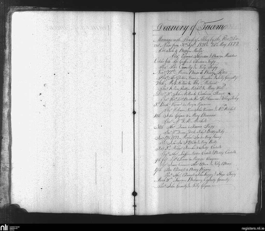 Multiple Parishes; Multiple Counties; Archdiocese of Tuam. Marriages, Sep. 1821 to Mar. 1822