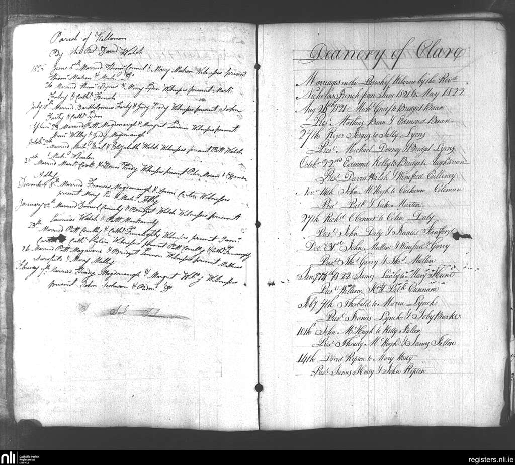 Multiple Parishes; Multiple Counties; Archdiocese of Tuam. Marriages, Aug. 1821 to Feb. 1826