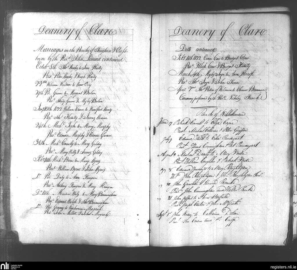 Multiple Parishes; Multiple Counties; Archdiocese of Tuam. Marriages, Oct. 1821 to Sep. 1822