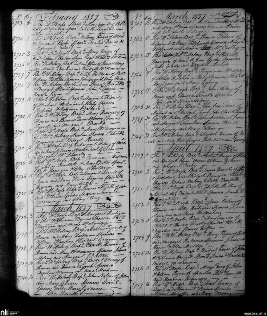 St. Munchin's, Limerick city; County of Limerick; Diocese of Limerick. Baptisms, Feb. 1827 to Apr. 1827