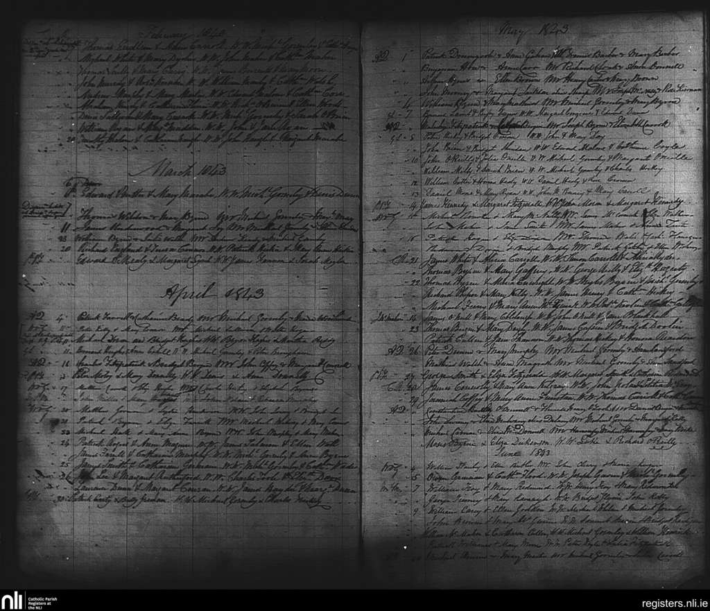 St. Andrew's, Dublin city; County of Dublin; Archdiocese of Dublin. Marriages, Feb. 1843 to June 1843