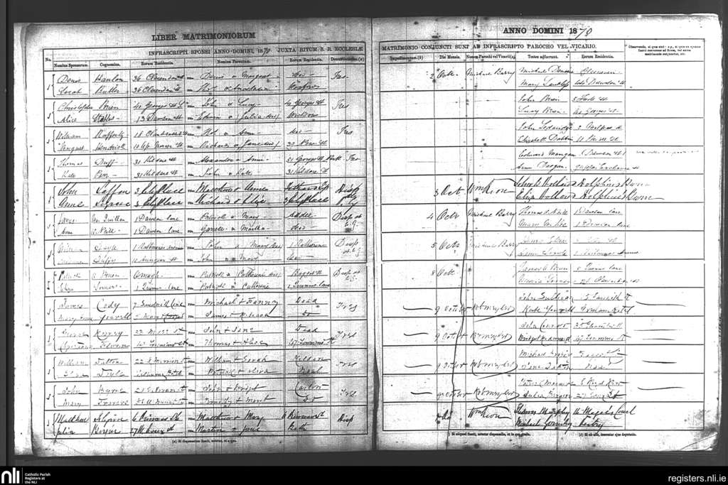 St. Andrew's, Dublin city; County of Dublin; Archdiocese of Dublin. Marriages, Oct. 1870