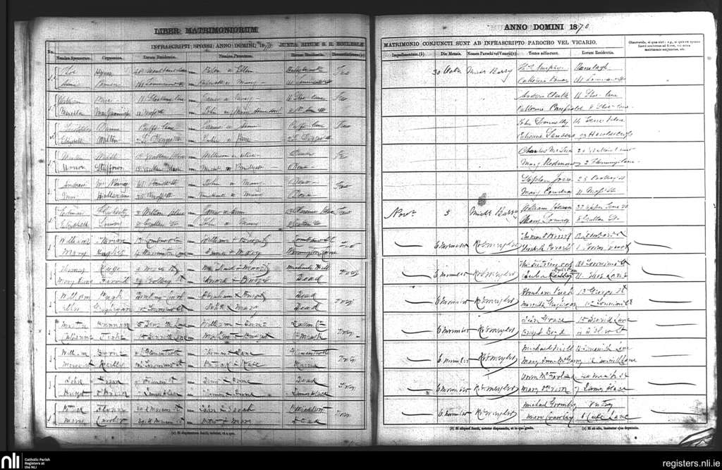 St. Andrew's, Dublin city; County of Dublin; Archdiocese of Dublin. Marriages, Oct. 1870 to Nov. 1870