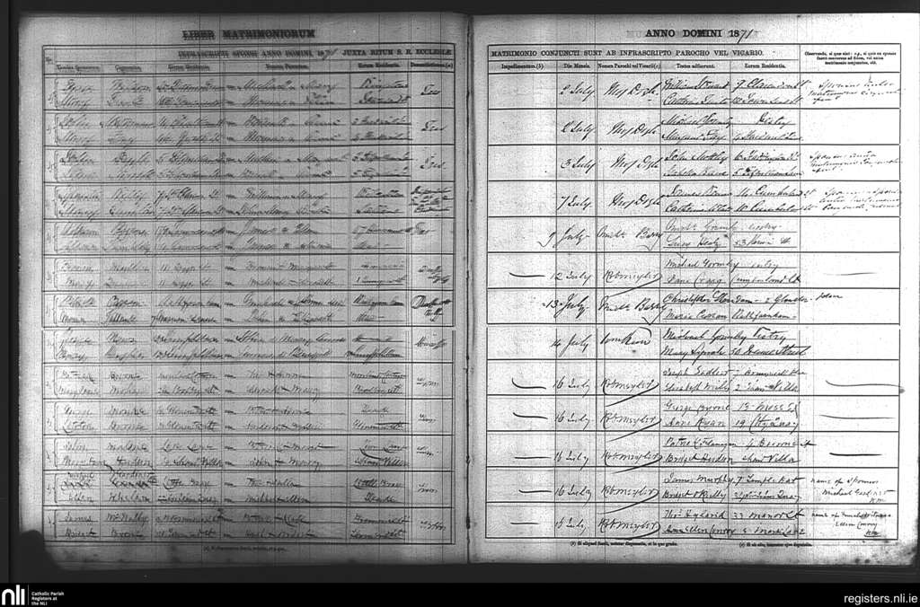 St. Andrew's, Dublin city; County of Dublin; Archdiocese of Dublin. Marriages, July 1871