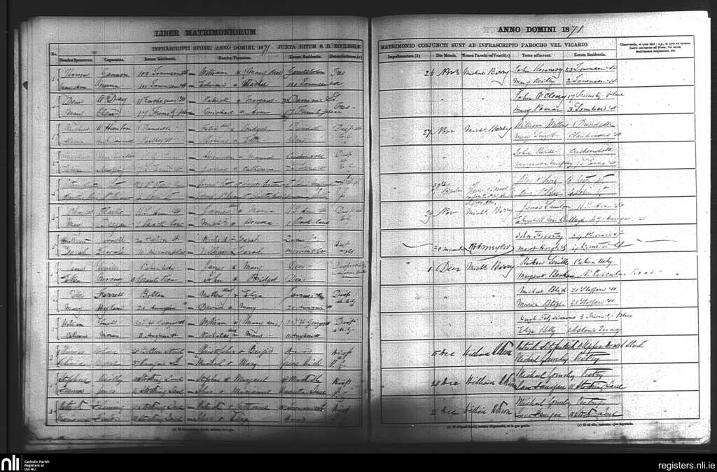 St. Andrew's, Dublin city; County of Dublin; Archdiocese of Dublin. Marriages, Nov. 1871 to Dec. 1871