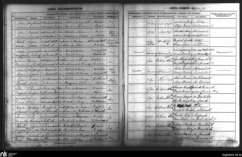 St. Andrew's, Dublin city; County of Dublin; Archdiocese of Dublin. Marriages, Dec. 1871 to Jan. 1872