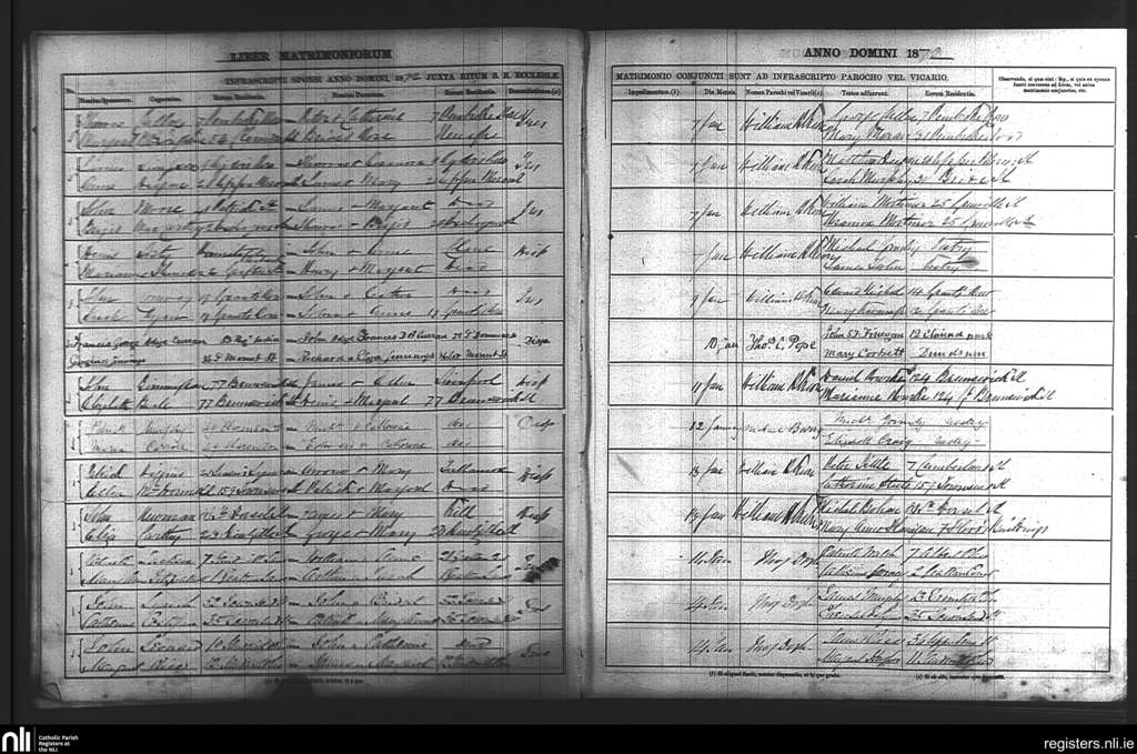 St. Andrew's, Dublin city; County of Dublin; Archdiocese of Dublin. Marriages, Jan. 1872